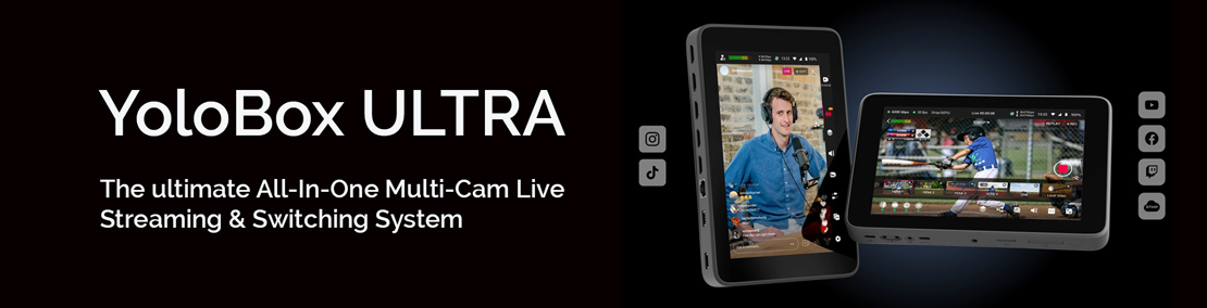 Take your live stream production to another new level with the YoloBox Ultra – Portable Multi-Camera Live Streaming Studio with Encoder/Switcher/Monitor/Recorder All in One. This advanced device empowers you to create professional live streams from anywhere, offering an even wider range of features and capabilities.