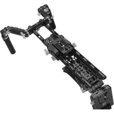The anti-twist mounts on each end of the shoulder pad are 60mm apart and can be used to mount directly to your 15mm. The center â…œ”-16 ARRI anti-twist mounts can be mounted to or through both male and female 3mm anti-twist pins. This provides an incredible way to mount the KONDOR Blue Battery Plates in a streamlined configuration. With this setup, the battery acts as an effective counterweight.
